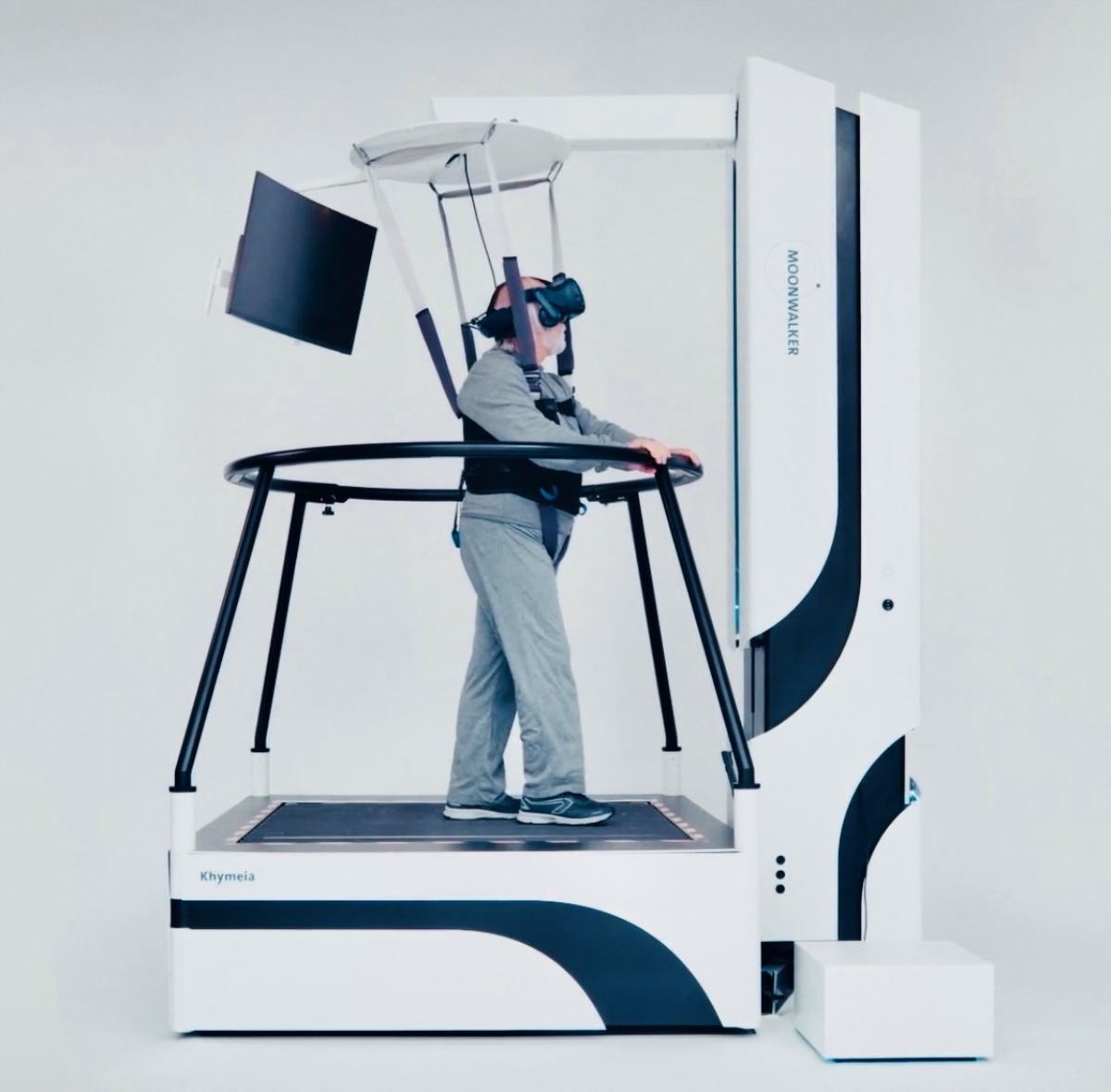 MOONWALKER č un sistema robotizzato di riabilitazione integrata, ideato da Khymeia. La tecnologia MOONWALKER genera un movimento omnidirezionale che in assenza di gravitą, ed integrato alla realtą virtuale immersiva, permette la somministrazione di stimoli multisensoriali (profumi, brezze di vento, correnti d'aria), che sono proiettati in contesti virtuali rappresentativi delle attivitą di vita quotidiana.